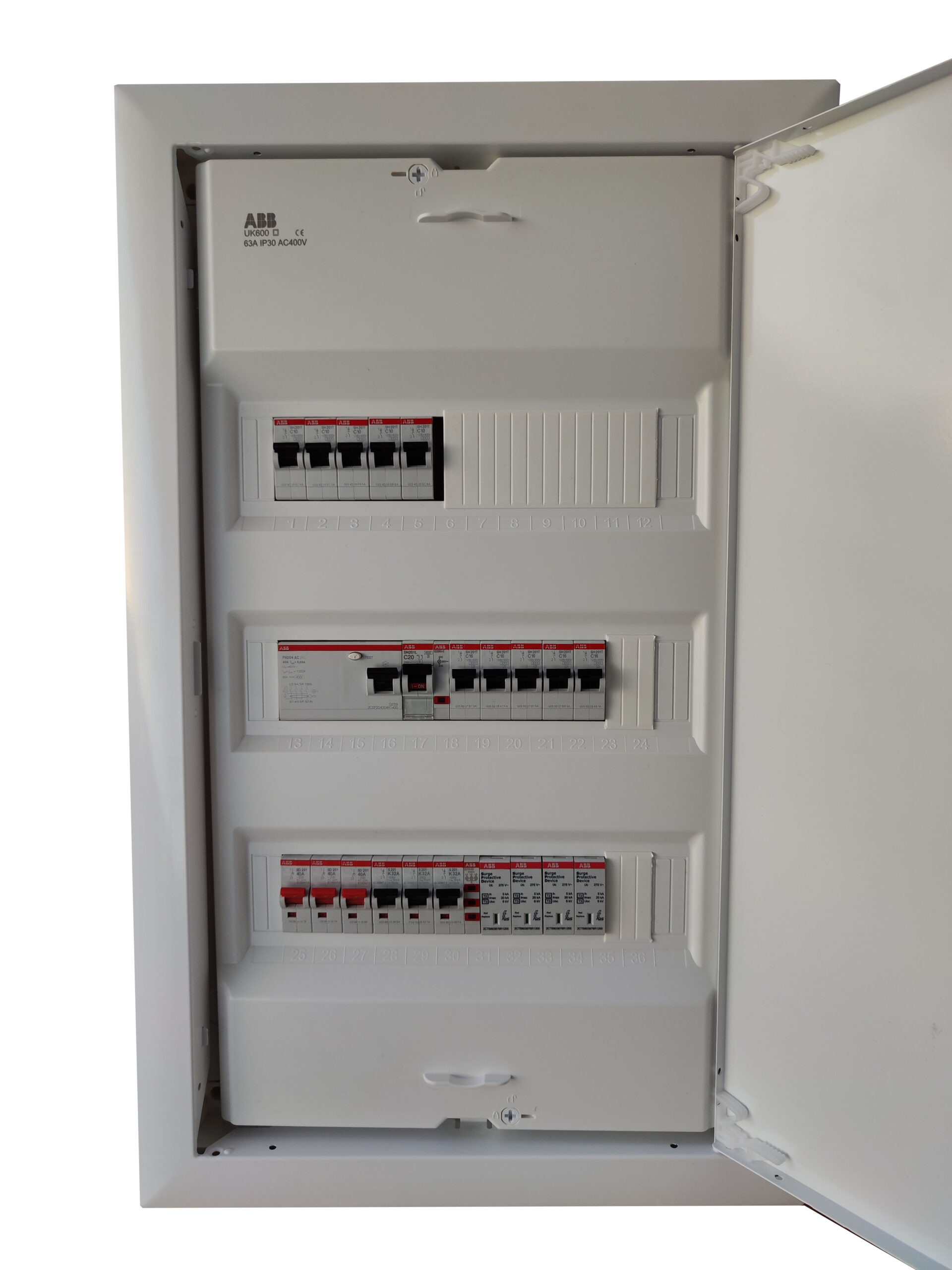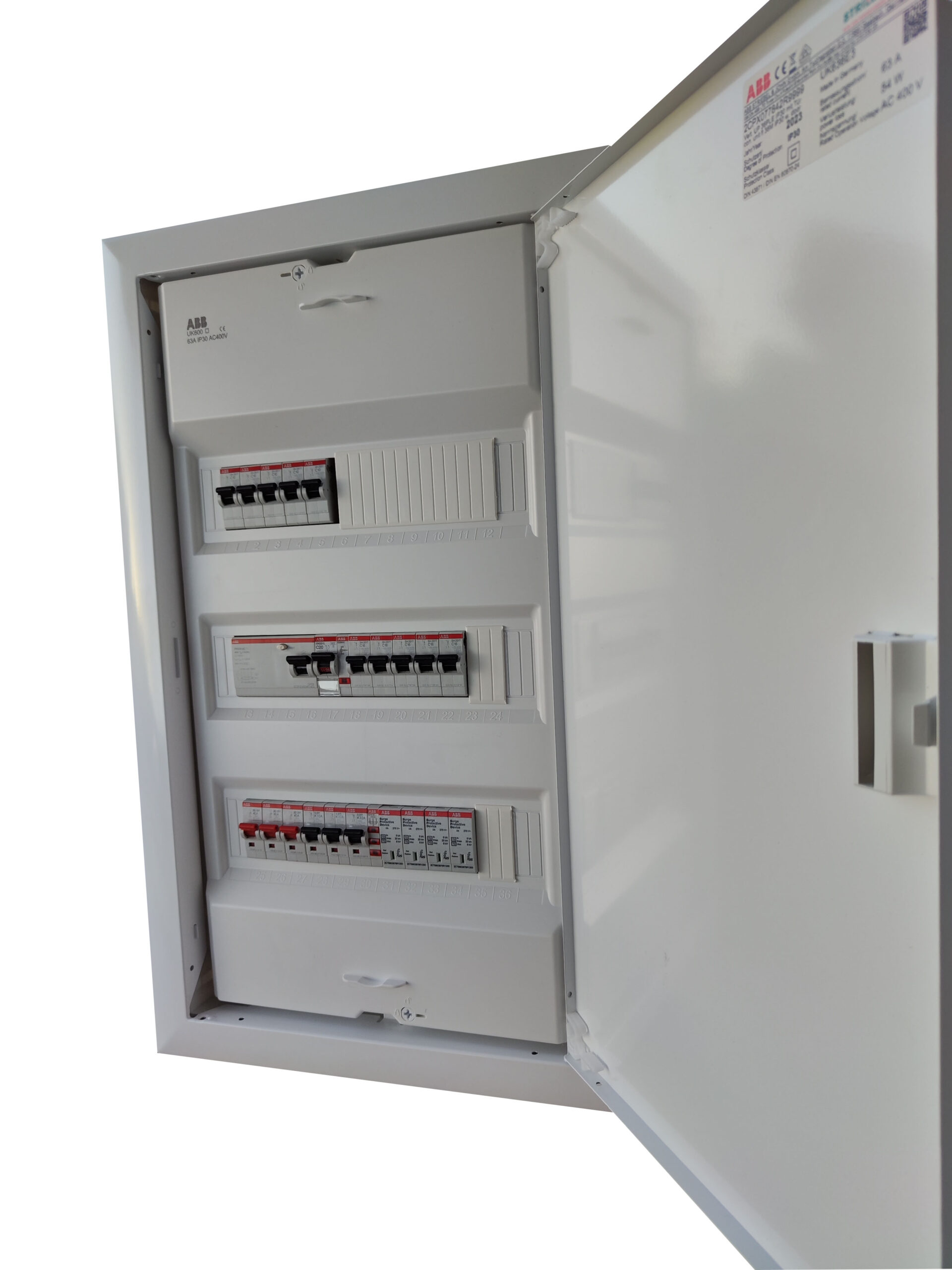 Μονταρισμένος έτοιμος για εγκατάσταση τριφασικός πίνακας (από επαγγελματία ηλεκτρολόγο εγκαταστάτη), υπερκαλύπτει τις ανάγκες της οικίας σας, προσφέροντας ασφάλεια στην καρδιά της ηλεκτρολογικής σας εγκατάστασης με την υπογραφή της ABB.