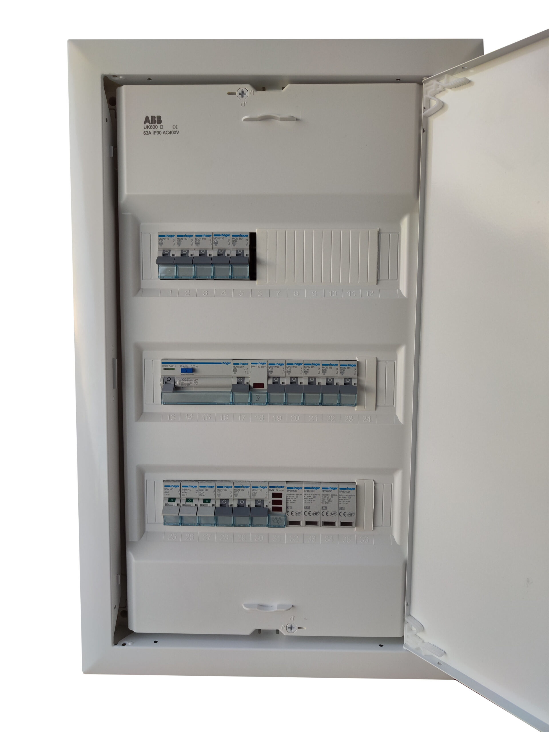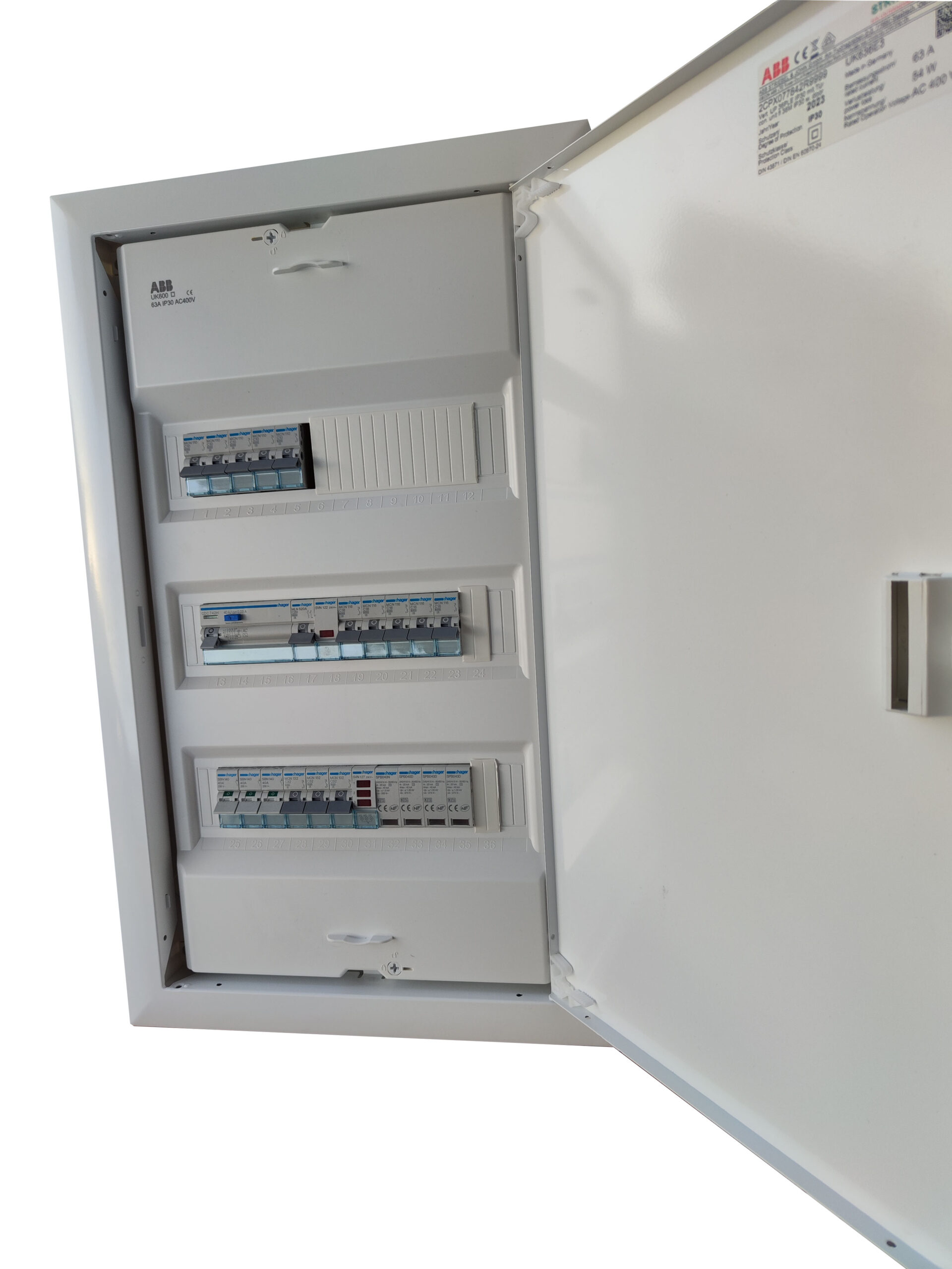 Μονταρισμένος έτοιμος για εγκατάσταση τριφασικός πίνακας (από επαγγελματία ηλεκτρολόγο εγκαταστάτη), υπερκαλύπτει τις ανάγκες της οικίας σας, προσφέροντας ασφάλεια στην καρδιά της ηλεκτρολογικής σας εγκατάστασης με την υπογραφή της HAGER.