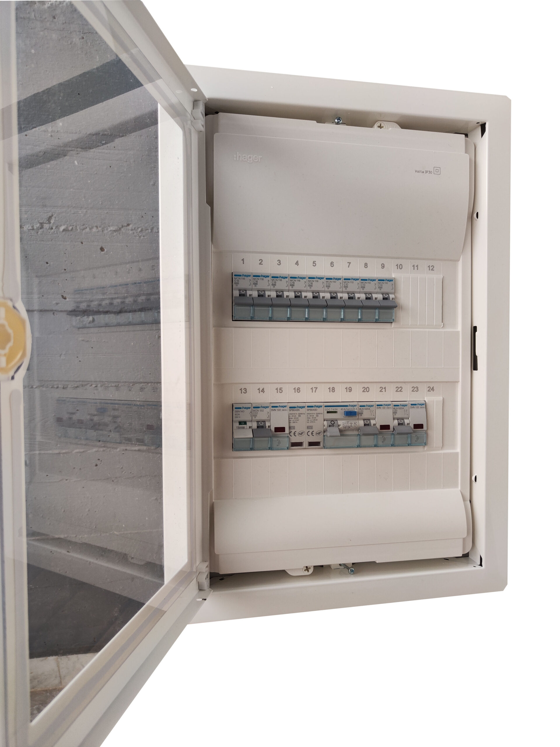 Μονταρισμένος έτοιμος για εγκατάσταση μονοφασικός πίνακας (από επαγγελματία ηλεκτρολόγο εγκαταστάτη), υπερκαλύπτει τις ανάγκες της οικίας σας, προσφέροντας ασφάλεια στην καρδιά της ηλεκτρολογικής σας εγκατάστασης με την υπογραφή της HAGER.