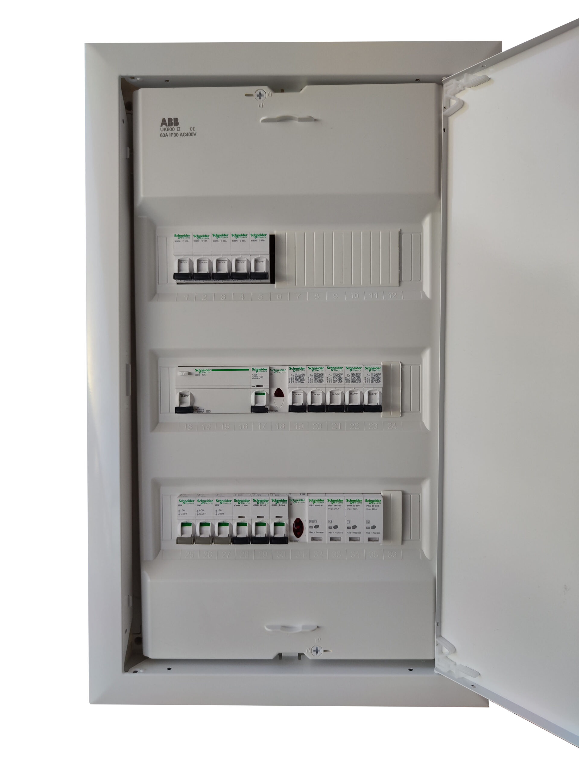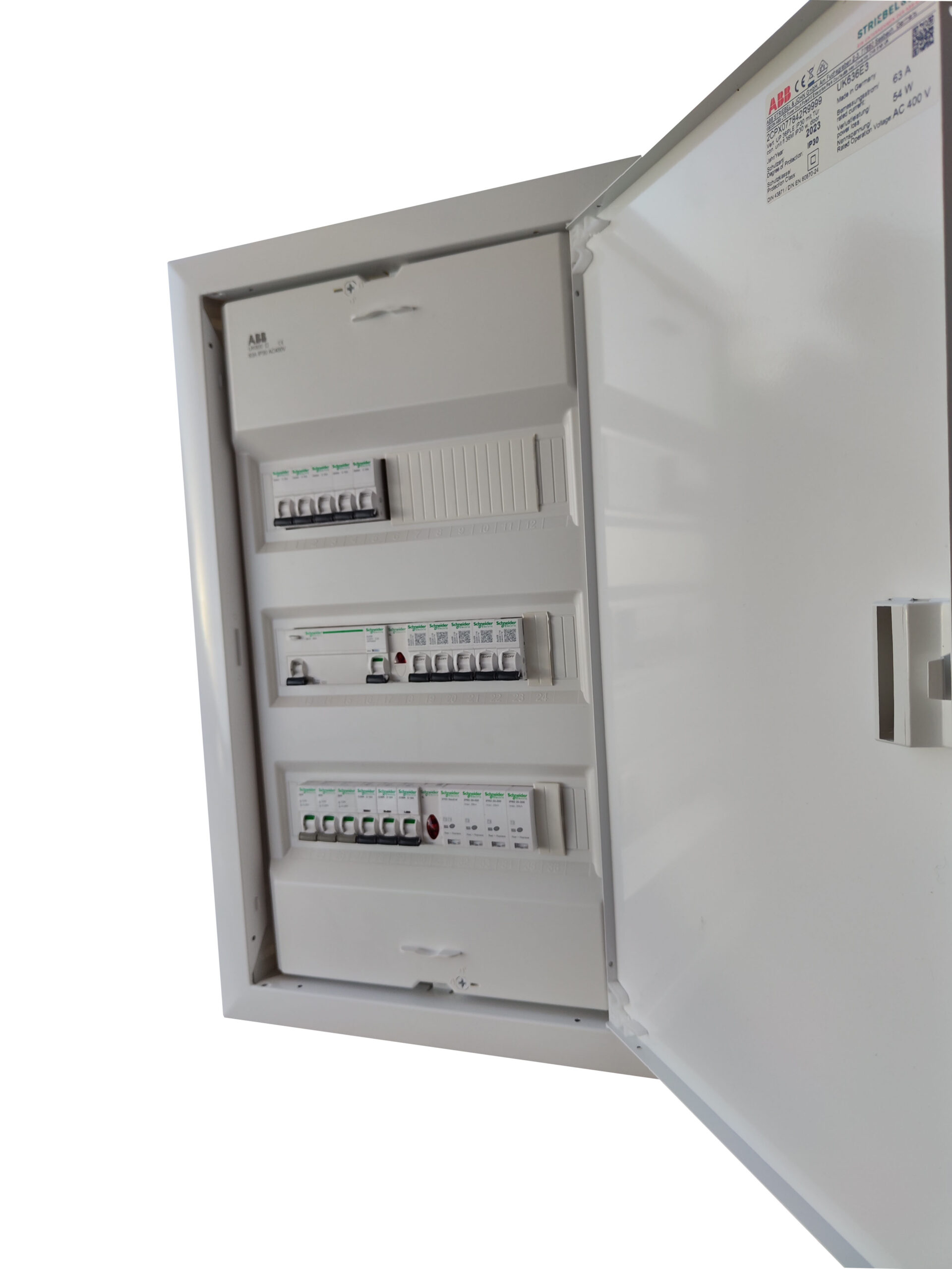 Μονταρισμένος έτοιμος για εγκατάσταση τριφασικός πίνακας (από επαγγελματία ηλεκτρολόγο εγκαταστάτη), υπερκαλύπτει τις ανάγκες της οικίας σας, προσφέροντας ασφάλεια στην καρδιά της ηλεκτρολογικής σας εγκατάστασης με την υπογραφή της SCHNEIDER.