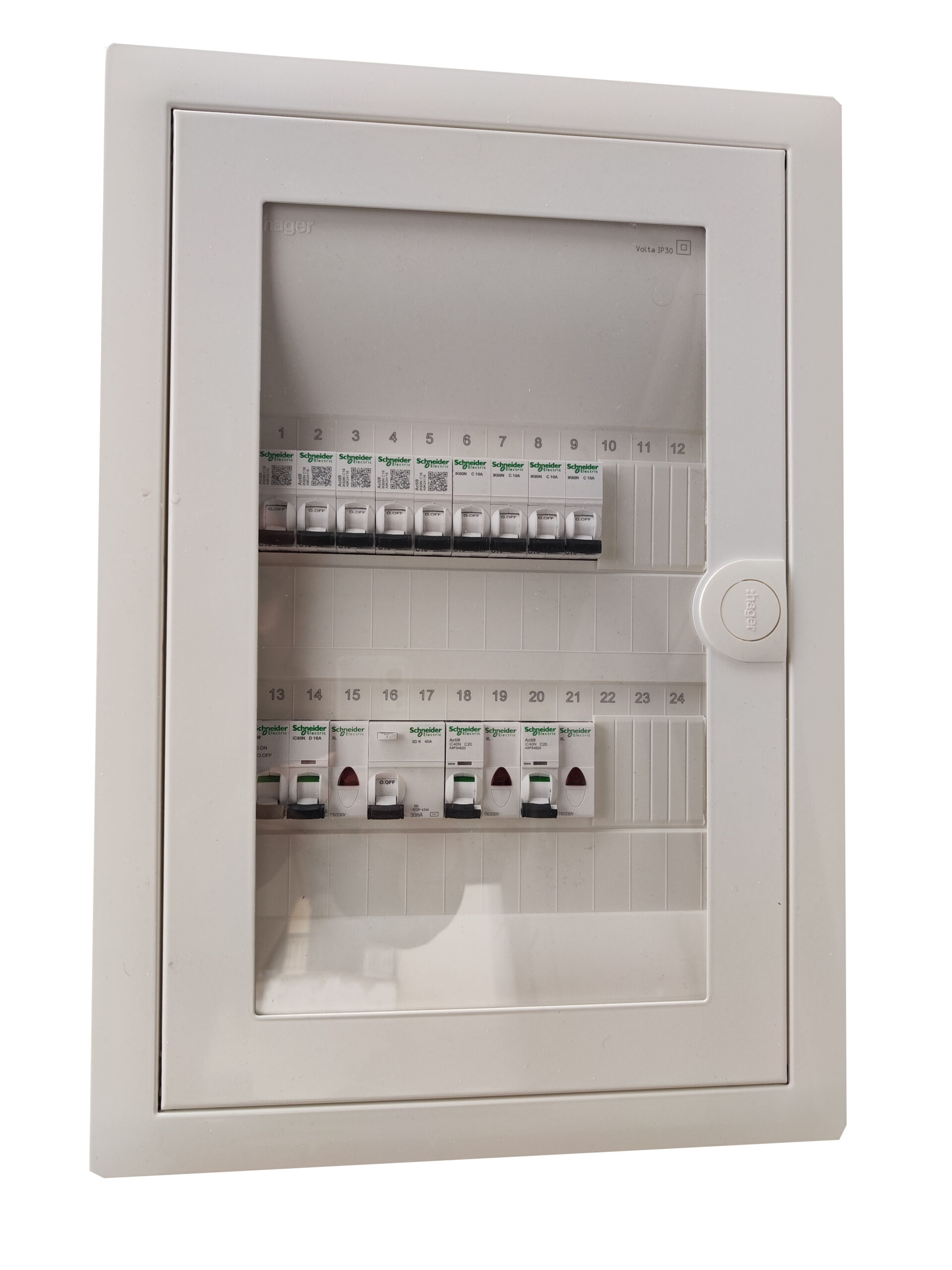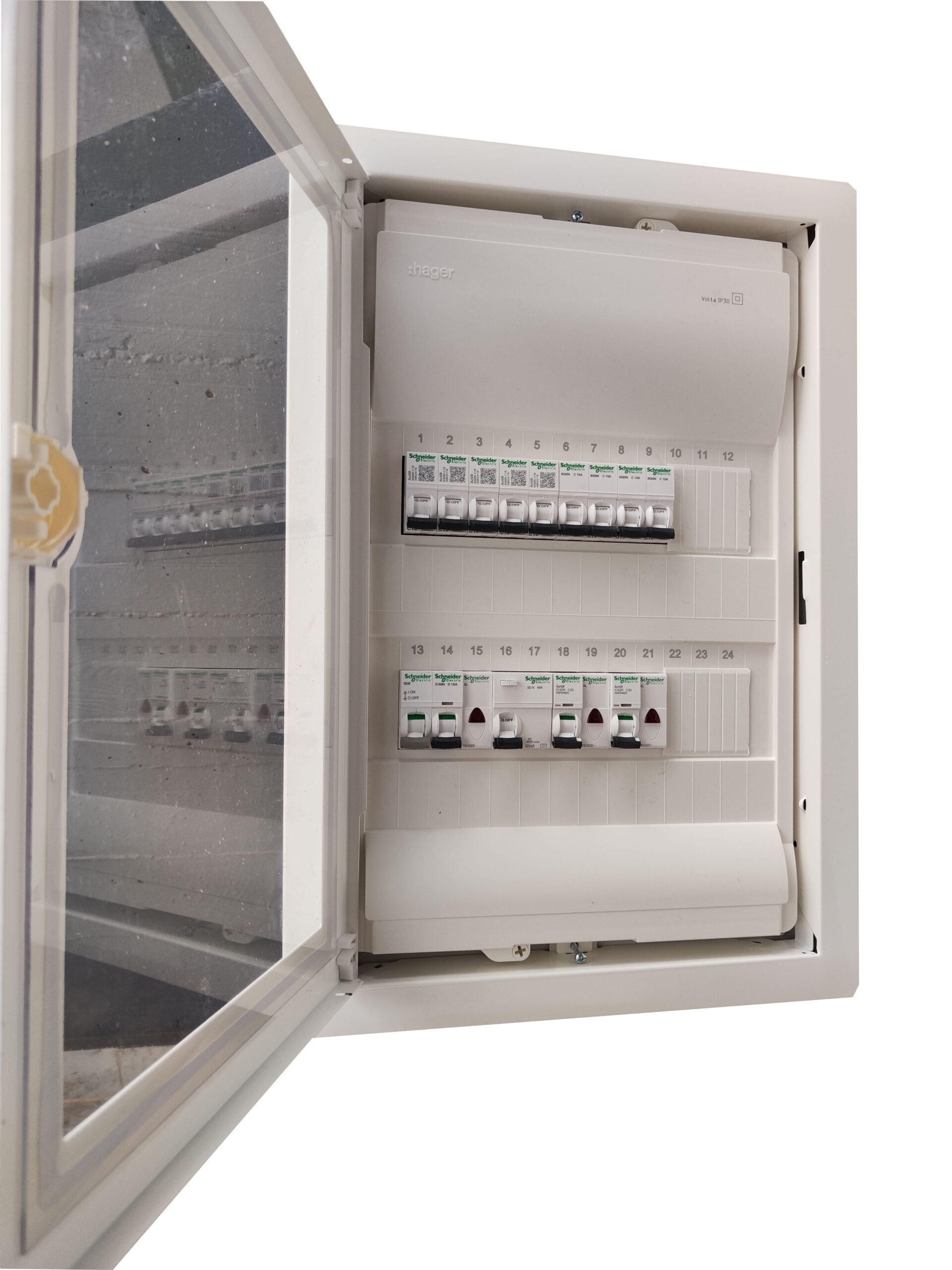 Μονταρισμένος έτοιμος για εγκατάσταση μονοφασικός πίνακας (από επαγγελματία ηλεκτρολόγο εγκαταστάτη), υπερκαλύπτει τις ανάγκες της οικίας σας, προσφέροντας ασφάλεια στην καρδιά της ηλεκτρολογικής σας εγκατάστασης με την υπογραφή της SCHNEIDER.