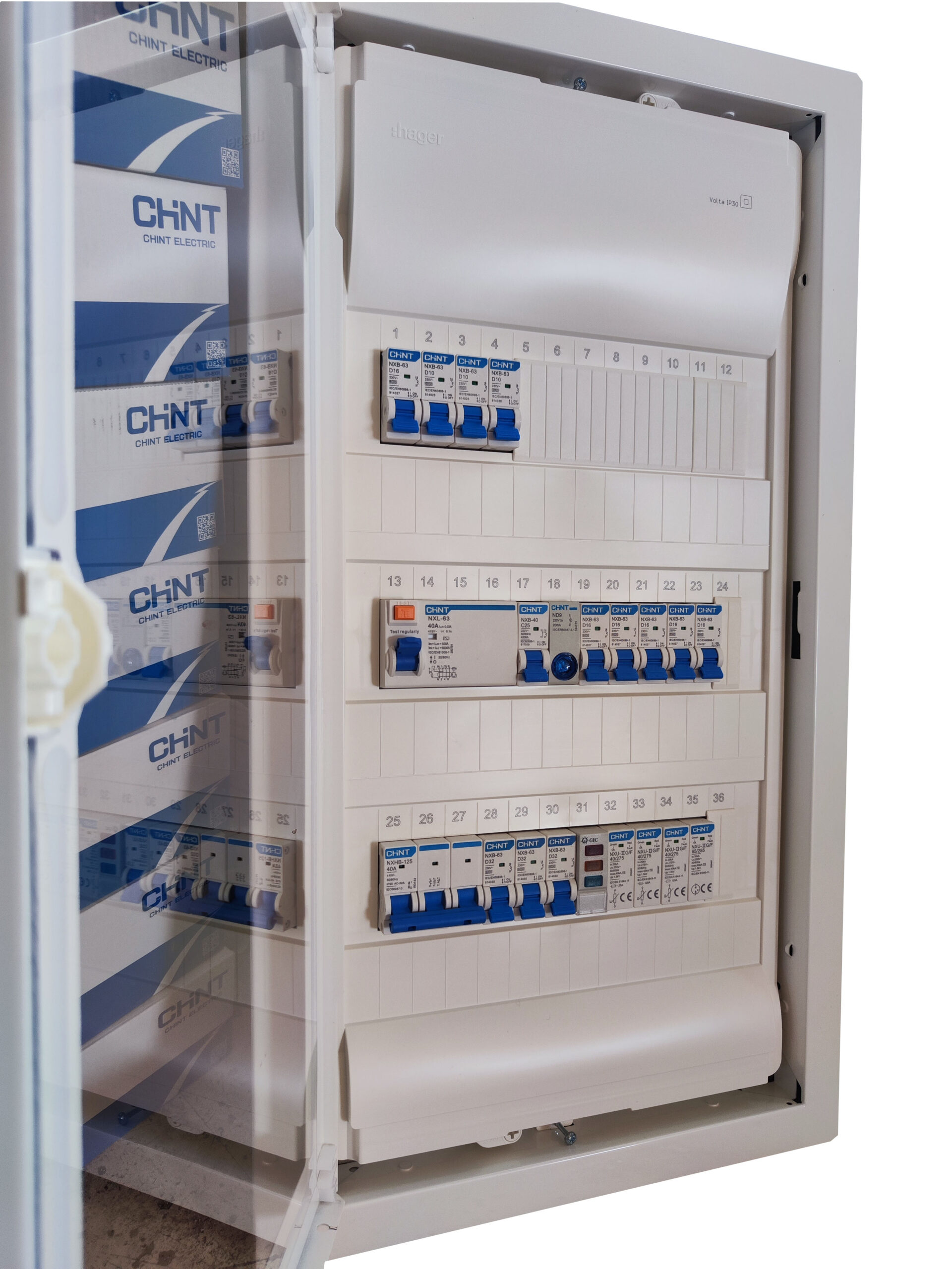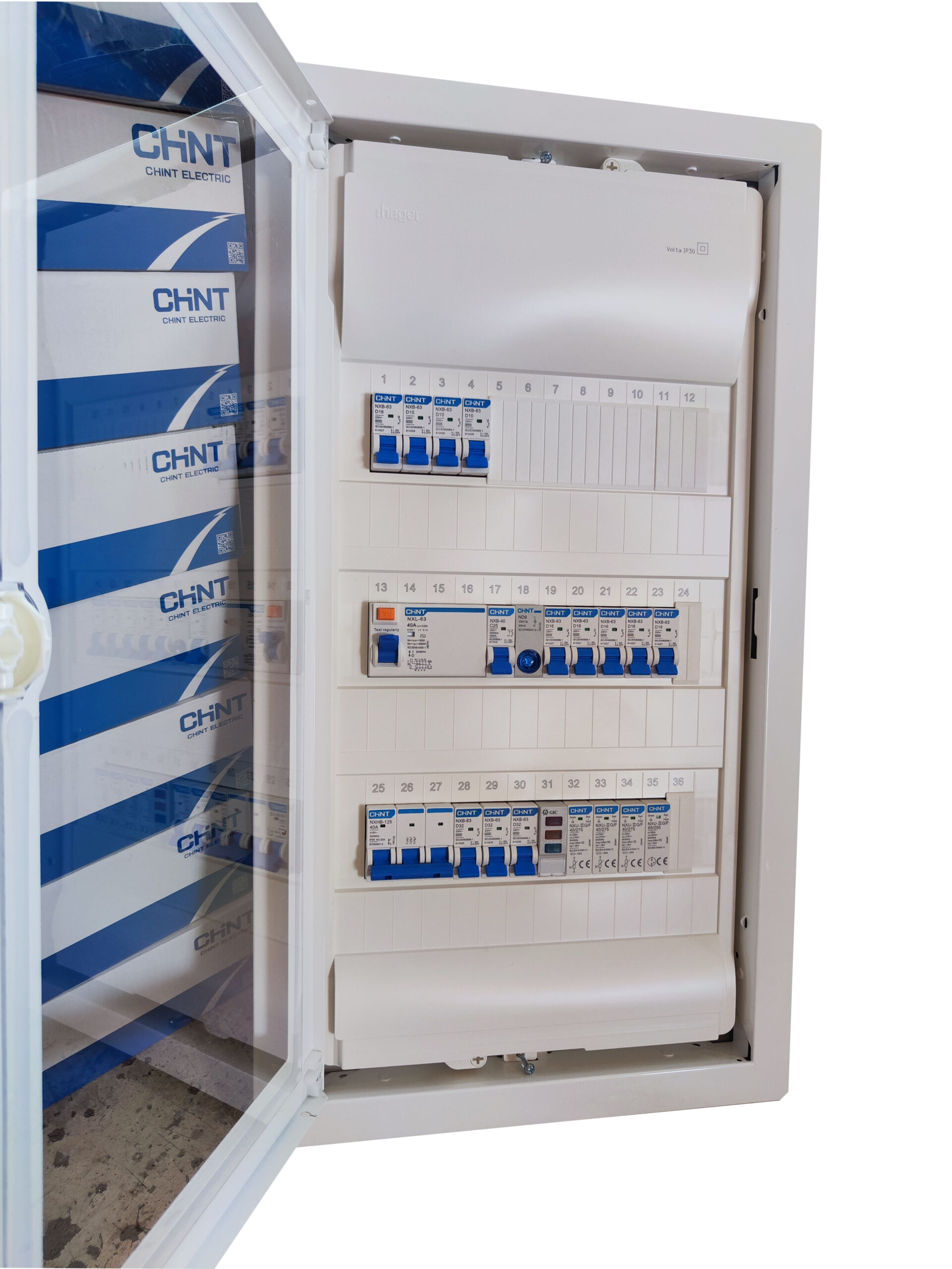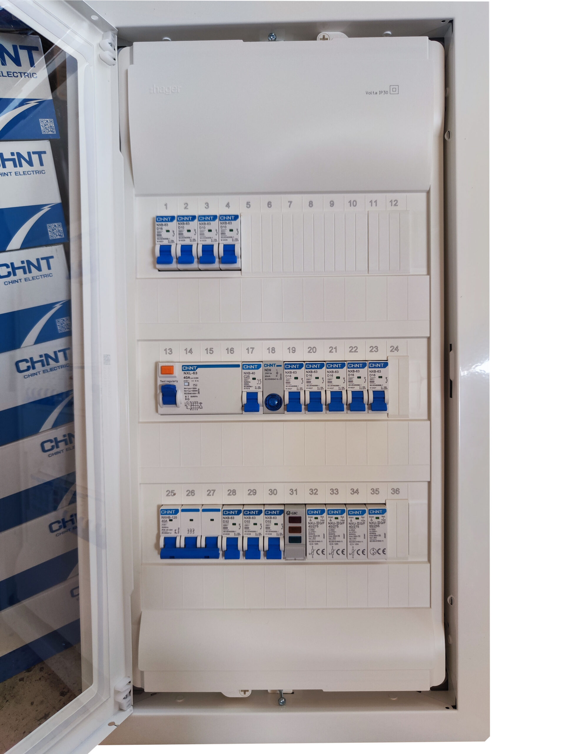 Μονταρισμένος έτοιμος για εγκατάσταση τριφασικός πίνακας (από επαγγελματία ηλεκτρολόγο εγκαταστάτη), υπερκαλύπτει τις ανάγκες της οικίας σας, προσφέροντας ασφάλεια στην καρδιά της ηλεκτρολογικής σας εγκατάστασης με την υπογραφή της CHINT.